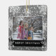 Ornement En Céramique Merry Christmas 2 Photo Silver Glitter Snowflakes