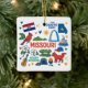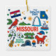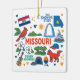 Commemorate your trip to the state of Missouri with this modern keepsake Christmas ornament, featuring hand-drawn style illustrations of iconic food, animals, landmarks, landscapes, and culture. Personalize the back to mark your US adventure and create a memory you'll hang up on the tree for the Holidays year after year.