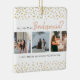 Demandez à votre soeur, à votre bestie ou à votre neice d'être votre demoiselle d'honneur à votre mariage avec ce décor chic et moderne de collage photo gardien de l'ornement. Doté de 3 photos carrés de vous puis de répondre à votre demande, avec police de script qui peut être changée en n'importe quelle couleur. Décoré de faux confettis d'or pour ce peu pétillant ! Tout le texte est facilement customisé en utilisant le modèle fourni.