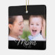 Celebrate motherhood with this simple and modern “Mom Est. [Year]” ornament. Featuring black and white typography, this design is perfect for new moms or seasoned mothers alike. Customize with a photo and the year to mark when she first became a mom — a sweet, personal touch that makes this ornament extra meaningful. Ideal for Mother’s Day, baby showers, pregnancy announcements, or casual everyday use. This custom ornament is a thoughtful way to honor the year that changed everything.