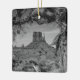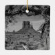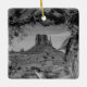 Les mitaines de Monument Valley sont encadrées de branches d'arbres en noir et blanc.