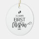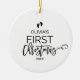 Le premier ornement de Noël pour bébé d'arbre de Noël est la décoration parfaite de l'arbre de Noël mignon. Le design comprend des empreintes de bébé, le nom de votre bébé, et les mots "premier noël" avec l'année arrangée pour ressembler à un arbre de noël.
