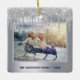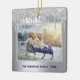 Un élégant faux argent à l'apparence métallique arrière - plan et faux argent parties scintillant drip. Texte : Joyeux Noël avec police de style en lettres de couleur noire, lettres. Modèle pour votre propre photo de famille dans un cadre mince. Modèle pour votre nom de famille et un an. Parfait comme cadeau ou comme gardien pour votre famille.