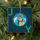 Ornement En Céramique Noël bleu Vert photo joie nom de famille