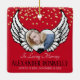 L'ornement de Noël de la famille est orné d'un arrière - plan rouge traditionnel qui peut être changé en n'importe quelle couleur, parties scintillant fausse or, ailes d'un ange, un modèle photo du coeur avec une photo de votre être aimé, les mots de sympathie traditionnels "dans la mémoire de l'amour", leur nom, et les dates de naissance et de mort.