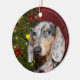 Joli dachshund aux cheveux courts avec un arbre de Noël et couleurs de vacances dans la céramique arrière - plan amoureux de les chiens ornement de Noël