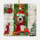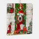 Un chien de Basset Hound assis à l'extérieur de la maison décorée avec la couronne de Noël, le sapin de Noël est une idée cadeau de Noël parfaite pour les amoureux de les chiens.