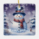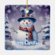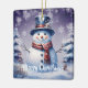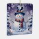 Ajoutez une touche de charme à votre arbre cette saison de vacances avec un ornement en céramique de Noël de Snowman en forêt violette. Le design ornemental présente un mignon bonhomme de neige dans un chapeau et écharpe de charme debout dans une scène de forêt hivernale avec la chute de neige. Autres cadeaux et objets de vacances disponibles avec ce design aussi.