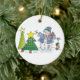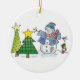 Un mignon bonhomme de neige décorant son sapin de Noël