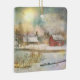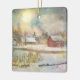 Ce magnifique ornement présente une scène nostalgique d'un Noël à l'ancienne en Nouvelle-Angleterre.