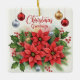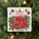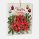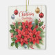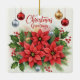 Salutations de Noël, poinsettias colorées avec des ornements festifs.