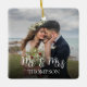 Célébrez la saison des fêtes avec cet ornement de photo de Noël élégant M. et Mme, avec une typographie de calligraphie simple et une photo de couple personnalisable. Parfait pour les mariages, les jeunes mariés, les anniversaires de mariage ou les couples qui célèbrent les fêtes ensemble, cet ornement personnalisé crée un souvenir de sapin de Noël intemporel.