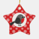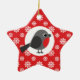 Cet ornement en céramique de Noël représente un robin entouré d'un motif de flocons de neige sur un arrière - plan rouge. C'est un joli ajout à vos décors de Noël.