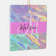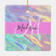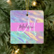 Nom monogramme irisé holographique rosé, pêche et aqua, et ornement céramique initial. Votre nom personnalisé et votre monogramme sont écrits dans un élégant script écrit à la main avec un arrière - plan rose. Un cadeau d'anniversaire ou de Noël parfait !