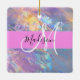 Nom monogramme irisé holographique rosé, pêche et aqua, et ornement céramique initial. Votre nom personnalisé et votre monogramme sont écrits dans un élégant script écrit à la main avec un arrière - plan rose. Un cadeau d'anniversaire ou de Noël parfait !