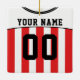 Facile à éditer soccer / football / sport maillot de vacances ornement, il suffit d'utiliser les boîtes à droite de l'image pour insérer votre propre choix de nom et de numéro. Ce design jersey a des rayures verticales rouges et des garnitures noires. La couleur arrière - plan peut être changée, il suffit de cliquer sur "PERSONNALISER". Si vous voulez une conception personnalisée faite dans un jeu de couleurs spécifique, veuillez me contacter en utilisant le lien "Contacter ce concepteur" ci-dessous. Parfait pour tous les jours fériés, que ce soit Noël, anniversaire, Hanoukka, ou toute fête ! Idées cadeaux pour le fan de sport ou le joueur de votre vie.