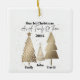 Personnalisez cet ornement de Noël, avec 3 arbres de Noël dorés, avec la photo de votre famille, les noms et l’année