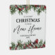 Élégant décor traditionnel festif sur le thème de la nouvelle maison avec une aquarelle magnifique feuillage de noël botanique, un robin, des chutes de neige, le dicton "notre premier noël dans notre nouvelle maison", vos noms, et l'année.