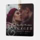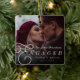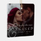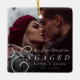 Cette conception d'ornement de photo minimaliste moderne "Notre premier Noël de fiançailles" présente une photo à fond perdu superposée d'une typographie de texte serif classique et les noms du couple avec leur date de fiançailles. Cette conception est recto-verso.