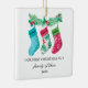 Célébrez un jalon magique avec cet ornement en céramique magnifiquement illustré avec trois bas festifs accrochés à une pinède. Avec le message sincère "Notre premier Noël en famille de trois" et l'année 2025, cet ornement est un parfait souvenir pour les nouveaux parents ou les familles en croissance. Qu'il soit accroché à votre arbre ou doué à des êtres chers, cette décoration douce et colorée reflète la chaleur et la joie de votre première saison de vacances.