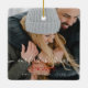 Notre premier cadeau de Noël Engaged Couple Hand Lettered Modèle photo ornament avec votre nom et votre photo fait un cadeau de Noël personnalisé parfait pour les jeunes mariés après leur mariage. Cette décoration de Noël photo moderne et élégante fait un grand cadeau pour une grand-mère, un grand-père, une mère ou un père.