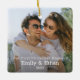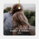 Notre Premier Noël Engagé Photo Minimal Ornement En Céramique Moderne. Un élégant couple fiançailles moderne modèle photo avec un texte simple pour customiser l'ornement avec le nom du couple et l'année du fiançailles. Contactez-moi à l'adresse truullc@gmail.com pour obtenir des produits correspondants ou de l'aide pour passer des commandes. Parfait cadeau de vacances, de fiançailles ou de mariage pour le couple marié.