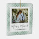 Pour le couple nouvellement marié ce Noël. Cet élégant décor de sapin de Noël "joyeux & marié notre premier Noël ensemble" présente un arrière - plan de tartan/plaid dans un beau vert doux. Cet ornement de Noël est une belle façon d'honorer votre mariage et fera pour un bon souvenir. L'ornement peut être personnalisé à l'avant et à l'arrière. Sur le devant, vous pouvez inclure une belle photo de vous-mêmes et sur le dos, vous pouvez inclure vos noms, puis au fond, vous pouvez inclure votre nom et votre année de mariage. Cet ornement est un beau cadeau que vous pouvez acheter pour vous-mêmes ou que vous pouvez offrir à ce couple adorable qui sont sur le point de passer leur premier Noël ensemble en tant que jeunes mariés.