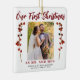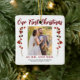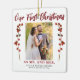 Premier Noël du couple marié en tant qu'ornement unique de M. et Mme garsaké avec des branches de baies rouges, votre photo personnalisée, et texte de script de typographie moderne rouge. +++++++++++ Peut être un beau cadeau pour les jeunes mariés.