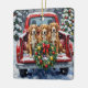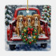 Celebrate the holiday season with this energetic and beautiful Nova Scotia Duck Tolling Retriever Christmas design! This cheerful scene features three bright, reddish-gold Tollers sitting happily in the back of a classic red pickup truck, nestled in a picturesque snowy winter forest. The vintage truck is adorned with a vibrant Christmas wreath, twinkling with red and gold ornaments and warm, glowing lights. Soft snowflakes gently fall, enhancing the winter wonderland effect. A decorated Christmas tree in the background completes this heartwarming picture, making it an ideal Christmas gift for any Toller owner, dog lover, or admirer of festive and active dog breeds. This design perfectly captures the joyful spirit of the holidays.