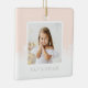 Décorez votre sapin de Noël avec notre garde spécial minimaliste rose pâle ombre & snowflake deux ornements en céramique photo. De chaque côté, le design se caractérise par un design photo simple, propre et moderne, à l'ombre rose pâle et à l'ombre des flocons de neige qui tombent. Personnalisez le devant et le dos avec vos photos de famille et votre nom.
