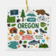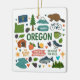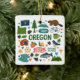 Commemorate your trip to the state of Oregon with this modern keepsake Christmas ornament, featuring hand-drawn style illustrations of iconic food, animals, landmarks, landscapes, and culture. Personalize the back to mark your US adventure and create a memory you'll hang up on the tree for the Holidays year after year.