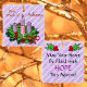 Our square violet ornament for the First Week of Advent features an Advent wreath on the front atop a pattern of white diagonal stripes containing the word HOPE. Hope is the theme of the week. A heartfelt sentiment appears on the back. + Front: The Advent wreath is made of evergreens and holly with one violet candle being depicted as lit. In actual practice, additional candles—two violet and one pink—would be customarily lit on subsequent Sundays. Such candles are pictured on additional ornaments. The background here is violet (or light purple or lilac). Violet is the liturgical color of the pre-Christmas season, symbolizing repentance, reflection, preparedness, and the royalty of Jesus as King of Kings. + Image Credits: Black and white Advent wreath AI-generated by mimicoloringdesigns via Pixabay, modified and colorized by Saints_Aplenty; bow by Elionas also via Pixabay. + Back: A wish for HOPE that can be personalized.