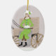 Une dame tirée à la main dans un buggy portant un joli manteau vert, et il neige.