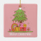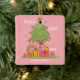 Célébrez la saison dans un style rétro sucré avec cet Ornement de Noël en céramique rose Peace, Love & Joy. Doté d'un charmant sapin de Noël d'inspiration vintage sur un arrière - plan rose doux, il est parfait pour ajouter une touche nostalgique et féminine à votre décor de vacances. Faites un bon souvenir ou un cadeau !