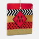 Parties scintillant Rouge Noir Or Brush Stroke Design monogrammé.