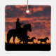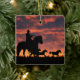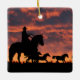 Un magnifique ornement de cowboy occidental avec un cowboy dans un coucher de soleil enflammé autour d'un troupeau sauvage de chevaux. Idéal pour Noël, pour la décoration du ranch.