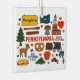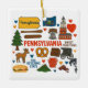 Commemorate your trip to the state of Pennsylvania with this modern keepsake Christmas ornament, featuring hand-drawn style illustrations of iconic food, animals, landmarks, landscapes, and culture. Personalize the back to mark your US adventure and create a memory you'll hang up on the tree for the Holidays year after year.