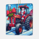 Ornement En Céramique Père Noël conduisant un tracteur rouge dans le Noë