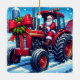 Père Noël Driving A Red Tractor In the Snow Christmas Ornament Art by Dancing Cowgirl Designs for the Rodeo Days Store.