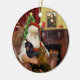 Père Noël se détend devant un feu douillet avec ses deux Dachshunds avant la grande nuit. Remarquez Mona Lisa sur le manteau tenant les mêmes chiens.