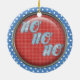 Rouge avec des points blancs sur un côté de l'ornement, bleu avec des points blancs sur le côté arrière, Père Noël et texte qui dit "Ho Ho Ho" sur un ornement en porcelaine qui est juste trop mignon pour passer!