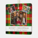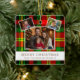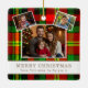 Ornement En Céramique Personalized Family 3 Photo Green Plaid Christmas