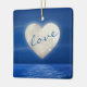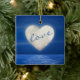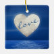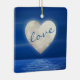 Cet ornement d'arbre de Noël pour les couples présente une lune de coeur sur un plan d'eau. Le front a le texte "amour" sur la lune du coeur. Cet ornement peut être personnalisé avec des noms, une année ou tout texte que vous souhaitez ajouter.