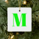 Personnaliser monogramme néon initial vert, blanc ornement en céramique de Noël