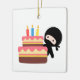Ornement En Céramique Petit ninja derrière le gâteau d'anniversaire
