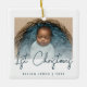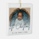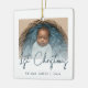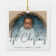 Célébrez le premier Noël du bébé avec ce ornement minimaliste moderne de photo-conservation. Le texte bleu turquoise indique "1er Noël" dans un script d'écriture manuscrite tendance. Remplacez facilement l'exemple d'image par votre photo préférée, et ajoutez le nom du bébé et l'année ci-dessous. Un écran de dégradé blanc aide à faire apparaître la superposition de texte.