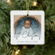 Ornement En Céramique Photo Baby's First Christmas Turquoise Script bleu