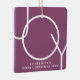 Cet ornement photo de Noël festif pour bébé est décoré du mot JOY sur un arrière - plan de prune violette. Facilement personnalisable avec votre photo, nom et année. Convient à une petite fille ou un garçon.