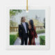Joyeux et Engagé ornement de noël avec des photos en forme d'arc sur le devant et une photo carré sur le dos. Merry & Engaged est écrit en typographie manuscrite et vous pouvez personnaliser davantage avec vos noms, texte personnalisé tel que First / Dernier Christmas Engaged ou votre nom de famille et l'année.
