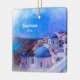 Santorin, Grèce — un des plus beaux endroits du monde. Si vous y avez voyagé, vous voudrez vous souvenir du voyage avec cet ornement unique de Noël avec la célèbre architecture bleue et blanche de la mer et votre date de voyage, et votre propre photo sur le dos. Cet ornement unique de Noël est un cadeau de charme pour le voyageur qui aime la beauté de la Grèce, ou toute personne qui veut commémorer leur voyage merveilleux. Photo Jean Beaufort, du domaine public, et effet aquarelle par TK Goforth.